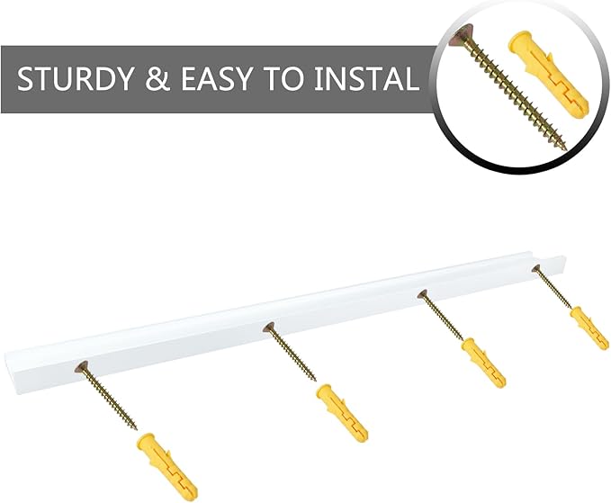- Easy to Install: This wood shelf is easy to install with hidden. Basic wall mounting screws and anchors are already included in this floating shelf. Measure 48*4*1.5 inch. Each floating shelf is spliced with large board, which is not easy to crack, and the texture is completely preserved.