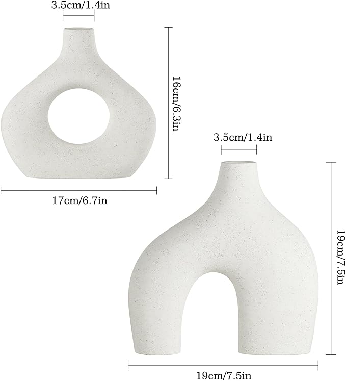 - 【Unique Design】: The hollow and irregular design of the white ceramic vase adds a modern, minimalist style to your home decoration. The unique donut shape and frosted texture come together to create a modern and artistic look, making them complement a variety of home décor styles and materials.