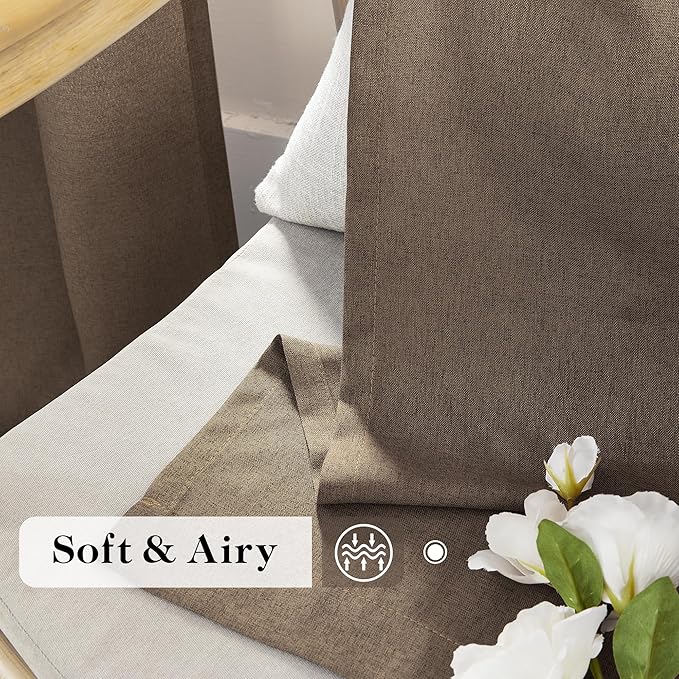 Natural Linen Blended Curtains - Back Tab Window Treatments Panels Drapes for Living Room/Bedroom, Light Filtering Semi Sheer (Set of 2, 50" x 84", Brown)