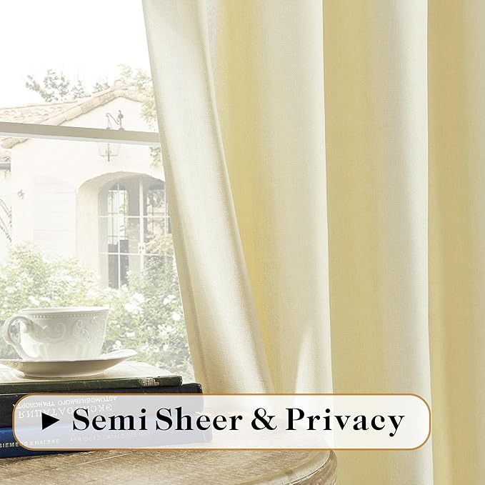 Back Tab Linen Curtains 72 Inch Length 2 Panels Set, Light Filtering Semi Sheer Farmhouse Boho Curtains & Drapes for Bedroom Living Room, Light Yellow W50 x L72