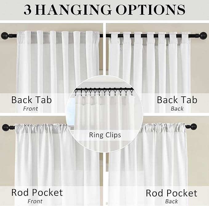 - Rod Pocket & Back Tab: Specially designed rod pocket & back tab top can offer you 2 hanging options both from rod pocket and back tab, then you get 2 styles of curtain to suit your home decor.