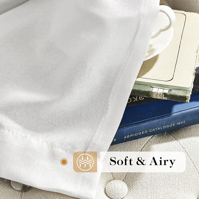 - Light Filtering & Airy: Beautifully frames your windows with a soft and hazy vision. Linen textured curtain draperies don't completely block the sunlight but gently filtering out harsh sunlight. The open weave lets in plenty of fresh air when you have the curtains closed but window open.