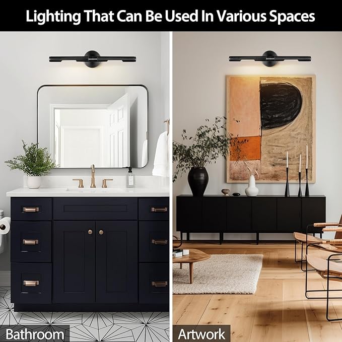 - Wide Range of Applications:The picture light can be mounted horizontally or vertically on the wall to complement various home styles. It is a perfect choice for lighting your wall art, bathroom vanity, bedroom, living room, dresser, fireplace, mirror cabinet, doorway, entryway, hallway, foyer, or bar café. Additionally, it can serve as a wall light, reading light, dresser light, bathroom light, or picture light. It is also ideal for use in bathroom spaces, it an excellent option for painting lights, portrait lights, frame lights, library lights, and poster lights.