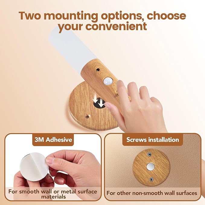 - 【choose your convenient】Adhesive Base: The base comes with adhesive, allowing you to attach it to any smooth surface without the need for complex installation. Nail Mount Option: In case of rough or uneven walls, you can also secure the base with nails. Use it as a flashlight to navigate through dark spaces, read a book in bed, or find items in your closet. The versatility of hand-held use extends your lighting options.