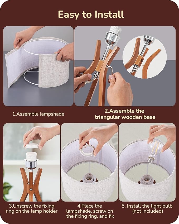 - [Stable & Space-saving] Tall and slender wooden tripod design makes lamp for nightstand structure more sturdy and less prone to tipping over; 9.05" diameter doesn't take up space, ideal for side table and children's room