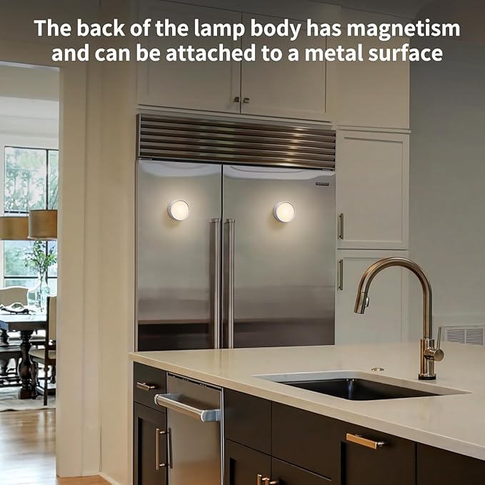- 【Ideal Solution to Easy Lighting: Magnetic Function】No more hassle of complicated wiring or power failure. These battery puck lights come with a mounting bracket, which is very easy to install, just fasten the bracket. There is a magnet sheet on the back of the bulb, which makes it easy and quick to install on the lamp head. No AC power required to illuminate dark areas.