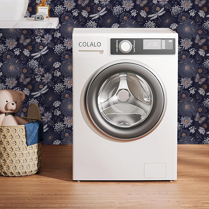 Navy Blue/Gold Floral Peel and Stick Wallpaper With Wildflowers, Butterflies and Dragonflies - Self Adhesive Vintage Contact Paper, Removable Decorative Vinyl, Easy Peel Off - 17.71" X 118.1"