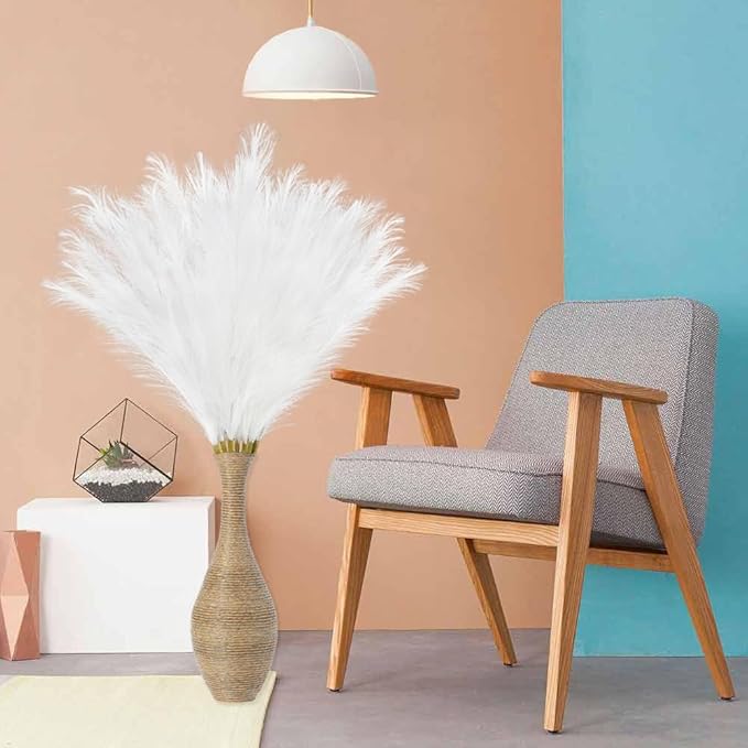 - Fluffy & Luxury: Feathers are made of high-quality silk, while stems are wrapped in paper by adjustable metal wires, presenting a natural appearance of pampas grass and giving the fluffy pampas grass a soothing and fuller look. You can bend or detach the stems to fit inside a floor vase and small vase, change a boring vase into a beautiful centerpiece, brings more inviting and cozy to your room