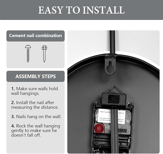 - 【Accurate and Quiet】- The silent non ticking decorative wall clock precise quartz sweep movement ensures accurate time and no any loud annoying ticking sounds,helping you enjoy peaceful sleep as time goes by.Requires 2 AA carbon batteries (not included)