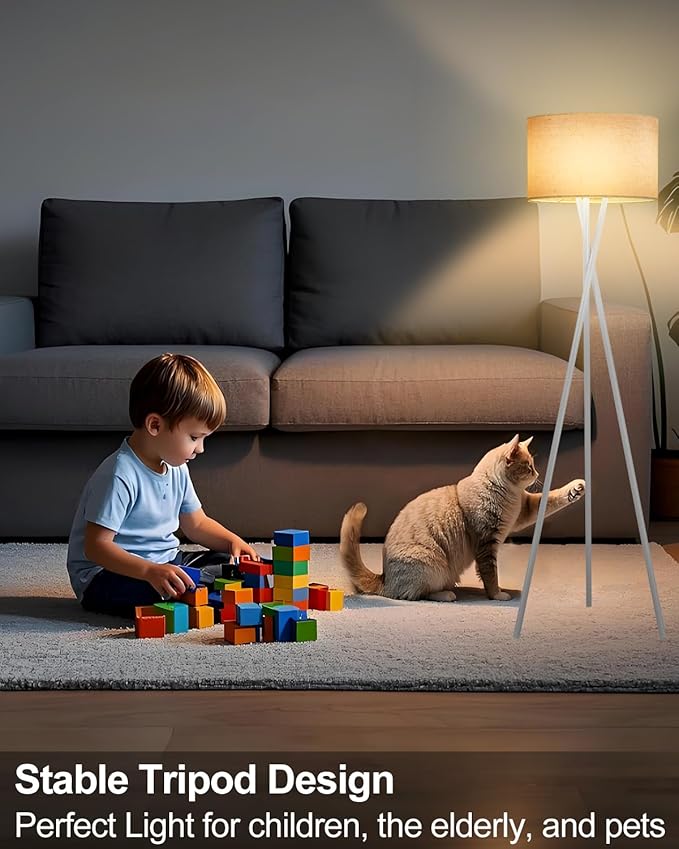 - Stable Design: The modern floor lamp is made of high-quality metal materials to enhance durability and features a tripod design, which can maintain stability even on the carpet, making it very safe for children, the elderly, and pets.