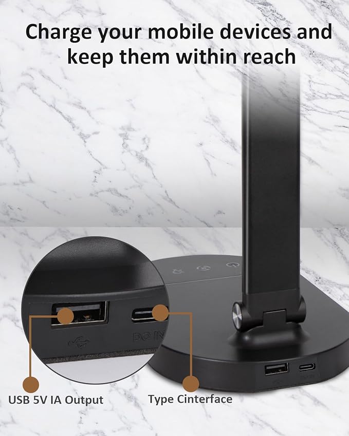 - Convenient Charging: The desk lamp with a USB charging port can charge your device. Keep your desktop clean and simple. The office desk lamp has a USB cable and adapter. The charging function is not affected by the table lamp switch