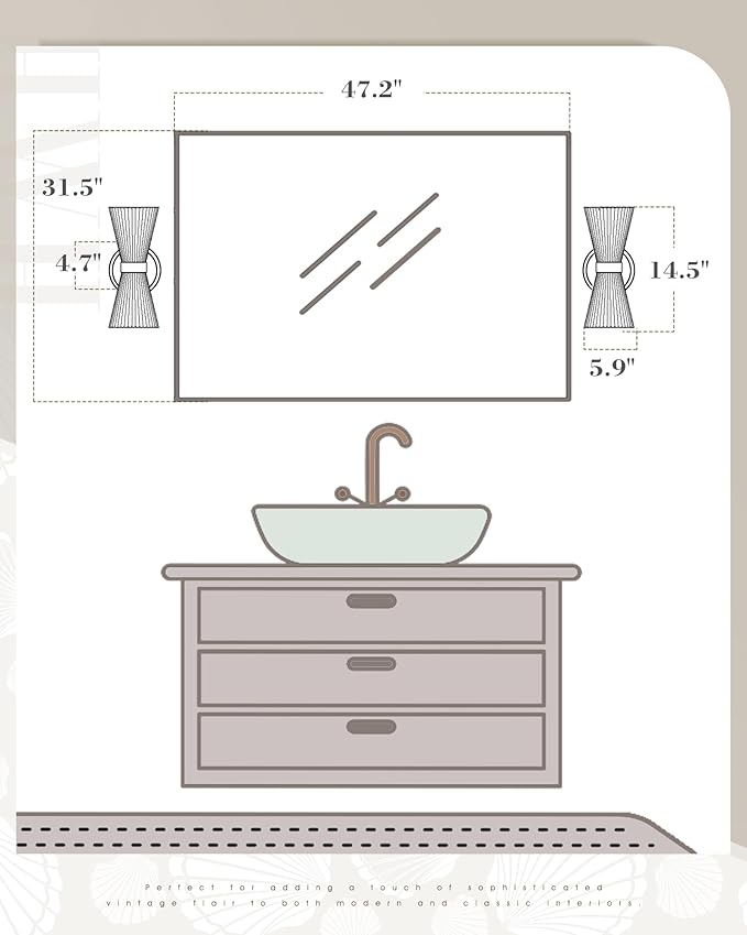 - 【Modern Design】The design of this wall vanity light fixture is inspired by the white seashell. Brushed brass metal base carrying two frosted milk-white striped glass shades to enhance the beauty of luxury and elegance!
