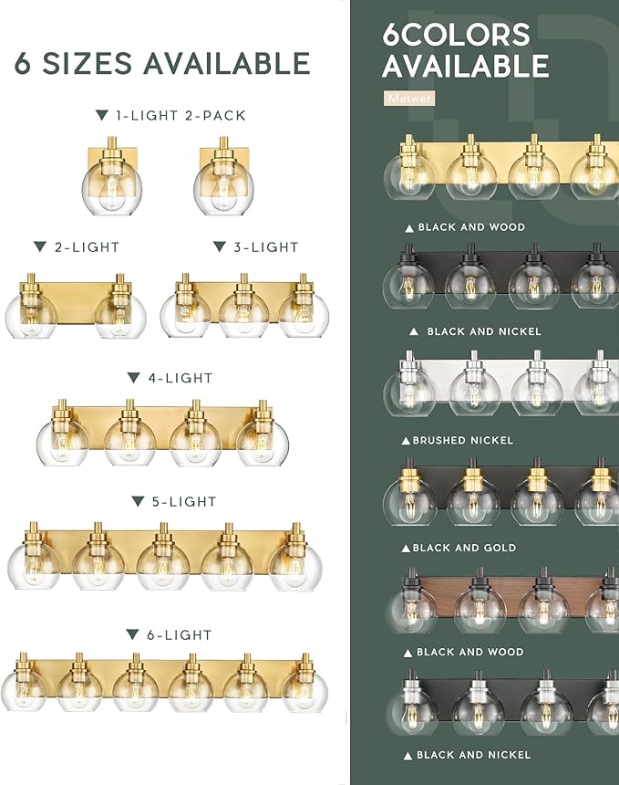 - WIDE APPLICATION: The modern bathroom lights over mirror combination of clear glass and metal creates a harmonious and sophisticated look that complements any interior design style. They are ideal for use as bathroom lighting fixtures over mirrors, vanity lighting fixtures, wall sconces, wall lights for bedrooms, etc.