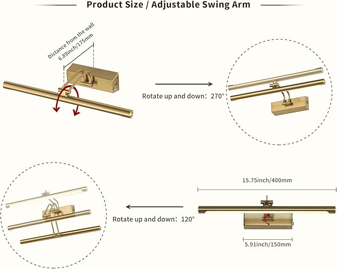 - 270° ADJUSTABLE:With 270°rotatable swing arm, the wireless lights for wall can be adjusted to individual needs. The wall lights battery operated is a perfect lighting solution for paintings.
