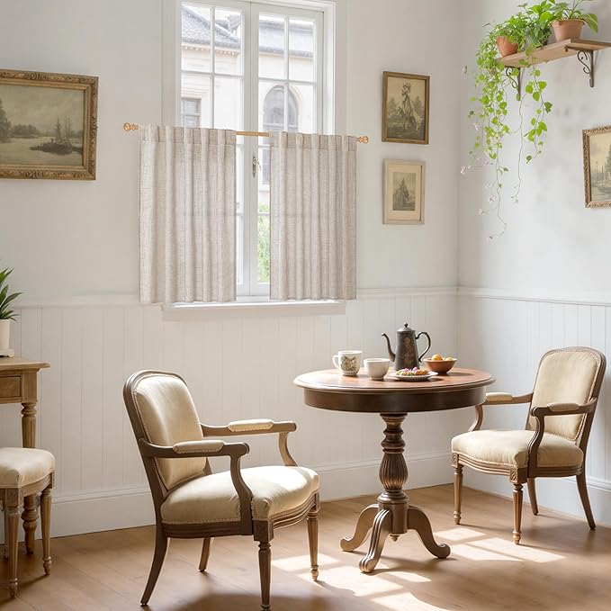 YoungsTex Short Linen Curtains 40 Inch Length for Kitchen Window Over Sink, Semi Sheer Cafe Drapes Light Filtering with Rod Pocket Back Tab for Bathroom, 42 X 40 Inch, 2 Panels