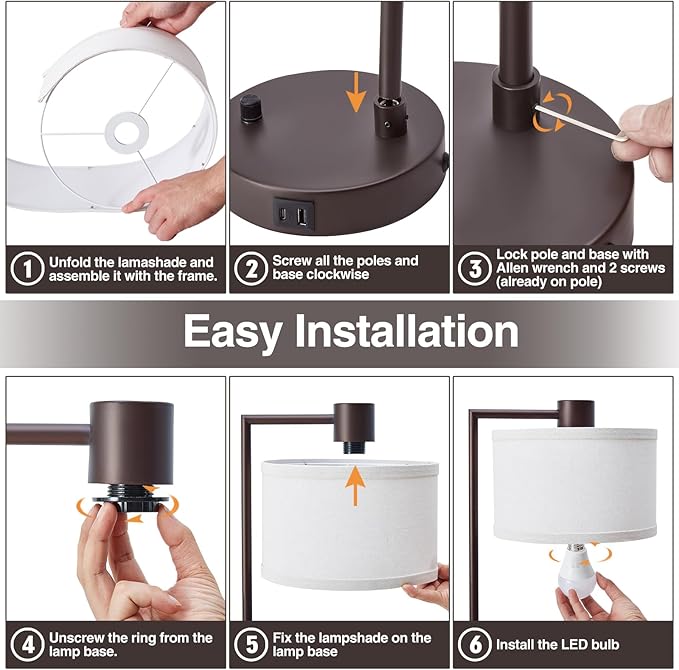 - Sturdy Metal Base & Rotary Dimmer Switch: Designed for both style and durability, this dimmable table lamp features a heavy-duty metal base and poles, ensuring exceptional stability. The high-quality metal construction prevents tipping, making it a safe and reliable choice for homes with kids or pets