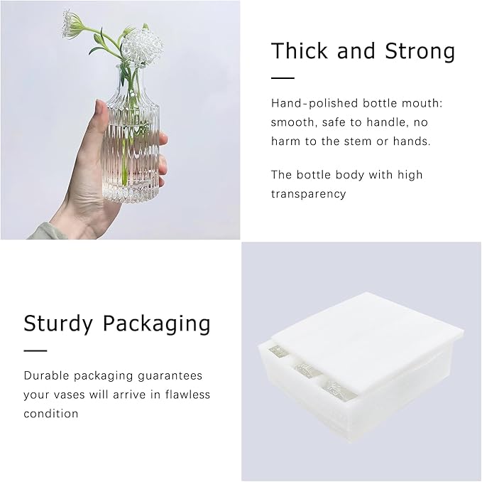 - SAFE & SECURE PACKAGING: Your satisfaction is our priority! To ensure these mini vases reach you in perfect condition, we have specially designed packaging. Each vase is carefully wrapped in thick Styrofoam boxes, to avoid breakage in transportation. If you receive a damaged vase, reach out to us immediately.