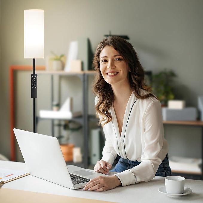 - 66" Floor Lamp with Stepless Dimmable: This floor lamp can use the remote control to adjust the brightness by stepless from 30% to 100% and color temperature from 3000K to 6000K, for warm white, natural white, and cool white light.