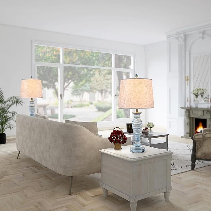 Blue Lamps Set of 2, 27.7" Table Lamps for Living Room with USB A+C Ports, Touch Lamp for Bedroom, 2 Bulbs Included