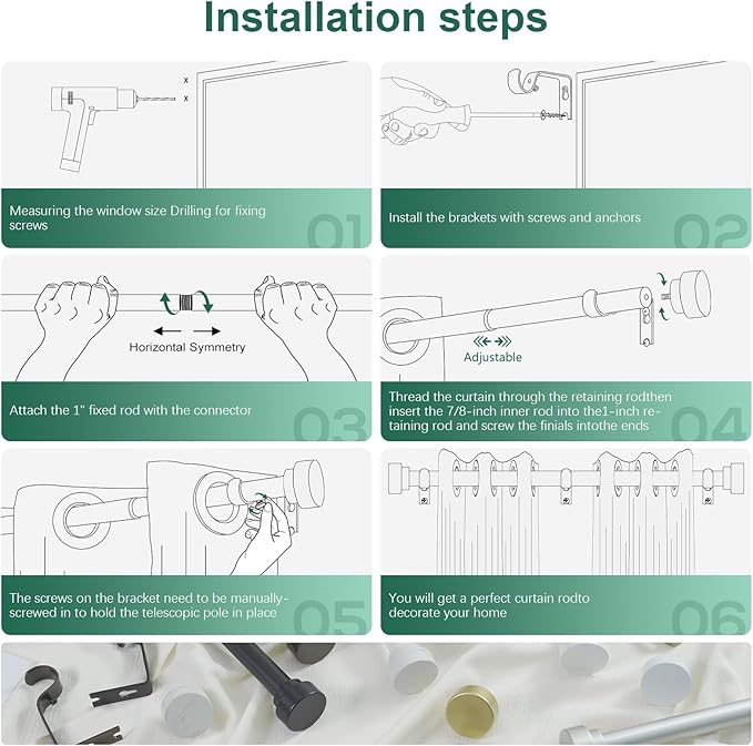 - The Best Guarantee:Hei! Dear offers strong after-sales service for the curtain rods we sell,If you have any questions, please be the first to tell us, we will be happy to provide you with help and solutions.Warm reminder, when placing order, please select the curtain rods in your preferred color and the size that fits your window.