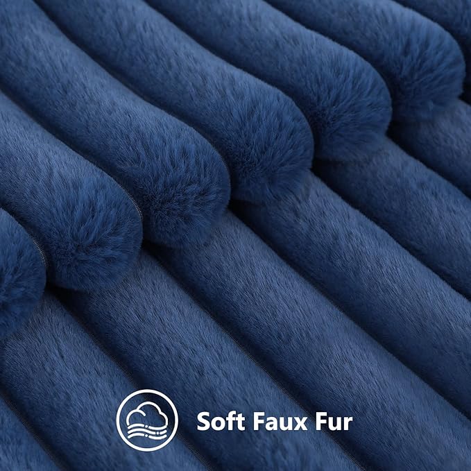 decorUhome Faux Fur Throw Pillow Covers 12x20 Set of 2, Decorative Soft Plush Striped Lumbar Neutral Couch Euro Pillow Covers with Velvet Back for Sofa, Bed, Living Room Home Decor, Blue