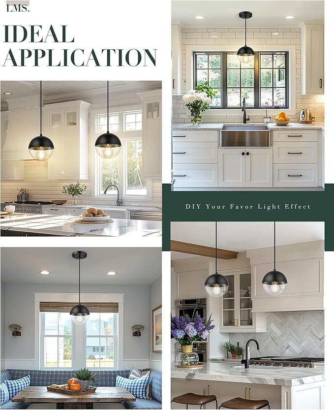 - Unique Decor and Industrial Style: The glass pendant light fixtures are made of matte black finish featured with high-quality metal and smooth clear glass shade, which provide a timeless mid century touch and a clean modern aesthetic for your space.