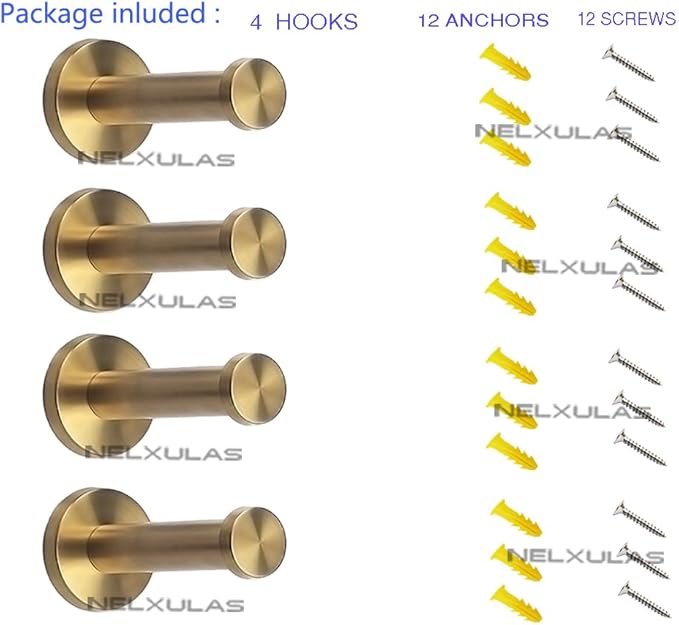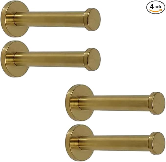 Golden Brushed Stainless Steel Single Heavy Duty Wall Mount Hook, Bath Towel Hooks, Robe Hooks, Coat Hanger, 4 PCS (4 inch)