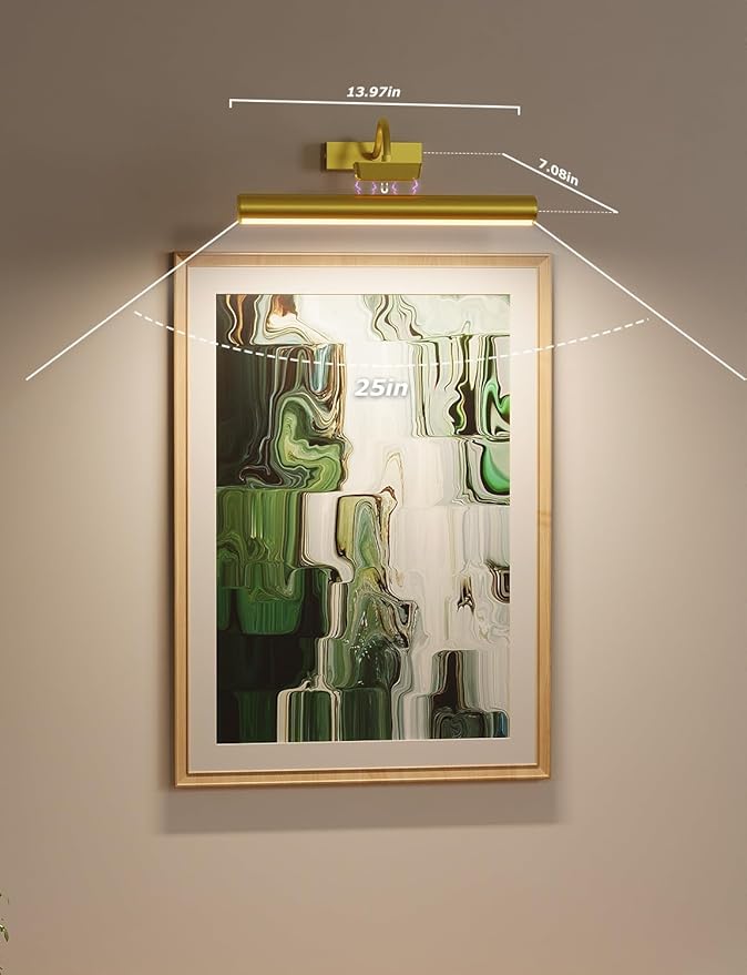 - Convenient Magnetic Design & Home Decor : The gold picture light come with a powerful magnet at the top of the light, It's very sturdy and you don't need to worry about it falling off. You can remove and use as a torch at any time. The classic golden appearance can be widely matched with pictures, photo frames, artworks, paintings, darts, galleries, posters, mirrors, etc. Add sparkle to your artwork. (𝐍𝐞𝐞𝐝 𝐭𝐨 𝐩𝐫𝐞𝐬𝐬 𝐭𝐡𝐞 𝐬𝐰𝐢𝐭𝐜𝐡 𝐨𝐧 𝐭𝐡𝐞 𝐬𝐢𝐝𝐞 𝐨𝐟 𝐭𝐡𝐞 𝐥𝐢𝐠𝐡𝐭 𝐭𝐨 𝐭𝐮𝐫𝐧 𝐢𝐭 𝐨𝐧 𝐛𝐞𝐟𝐨𝐫𝐞 𝐮𝐬𝐢𝐧𝐠 𝐭𝐡𝐞 𝐫𝐞𝐦𝐨𝐭𝐞 𝐜𝐨𝐧𝐭𝐫𝐨𝐥)