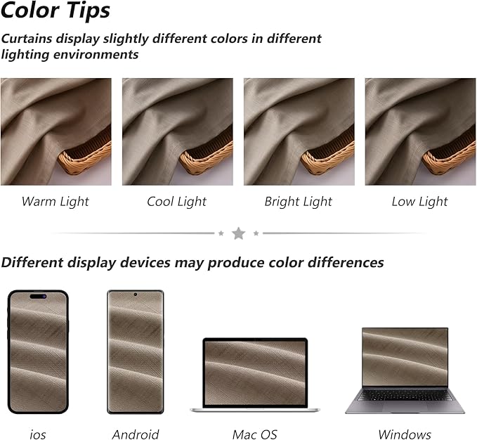 - Light Filtering & Airy: Beautifully frames your windows with a soft and hazy vision. Linen textured curtain draperies don't completely block the sunlight but gently filtering out harsh sunlight. The open weave lets in plenty of fresh air when you have the curtains closed but window open