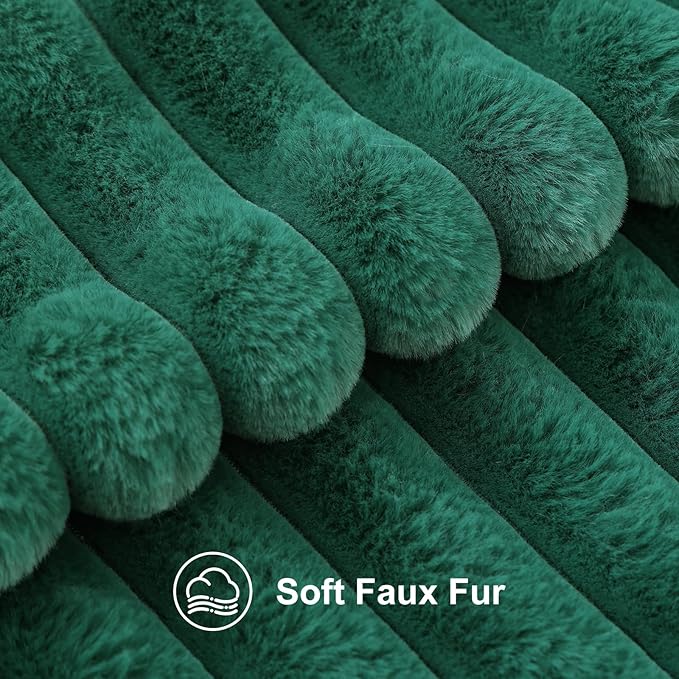 decorUhome Faux Fur Christmas Throw Pillow Covers 12x20 Set of 2, Decorative Soft Plush Striped Neutral Couch Euro Pillow Covers with Velvet Back for Sofa, Bed, Living Room Home Decor, Christmas Green