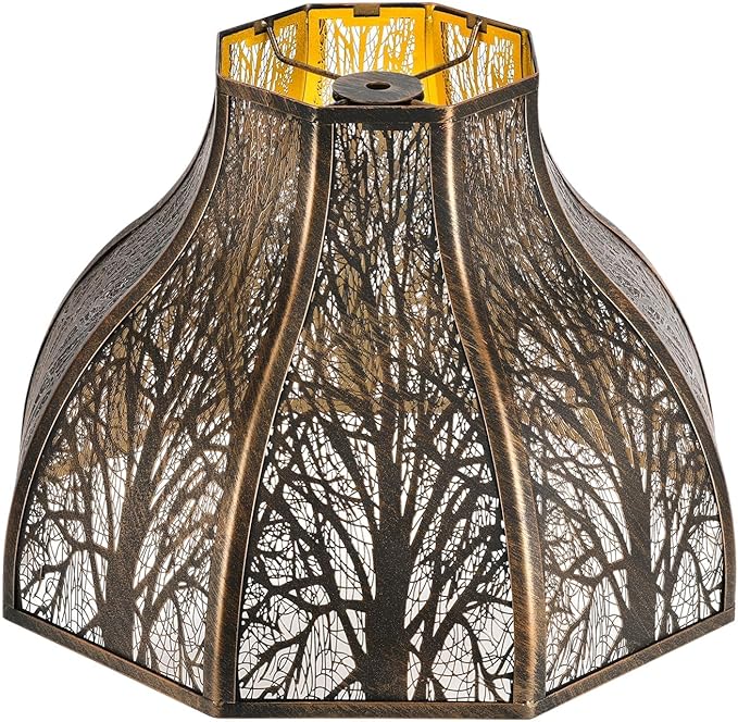 Etched Forest Large Metal Lampshade 5.32 X 13 X 9.5 Inch 8-Petal Lotus Shape Fits for Floor Lamp Table Lamp for Living Room Bedroom(Bronze Gold), Spider Fitter Lamp Shade