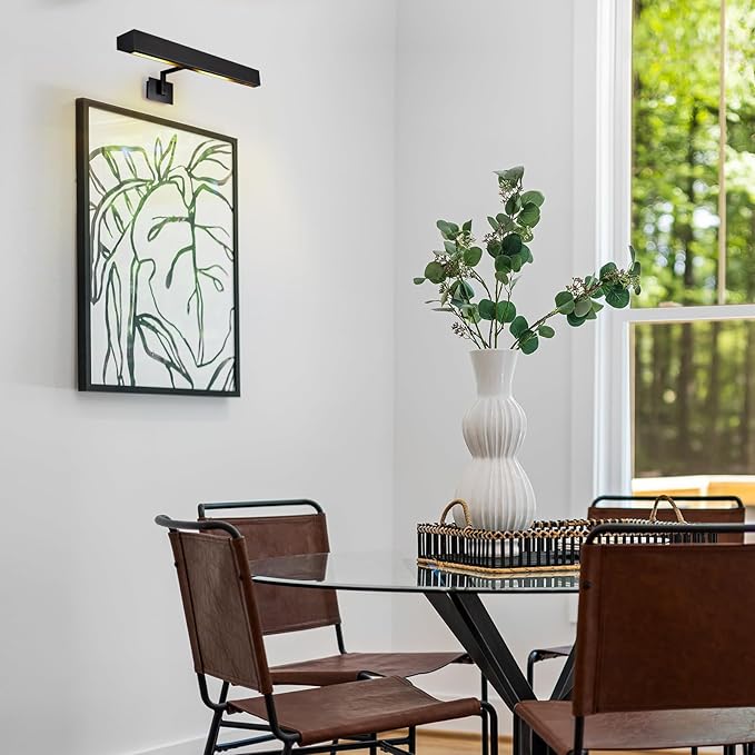 - 【Dimmable Picture Light】This black picture lights for wall feature adjustable brightness and 270° lighting angle, you can adjust your gold art light to ensure optimal highlight your artwork, photos, books, mirror and and collectibles according to your needs. Ideal choice as gallery light, poster light, picture frame light, museum light, bathroom vanity lights.