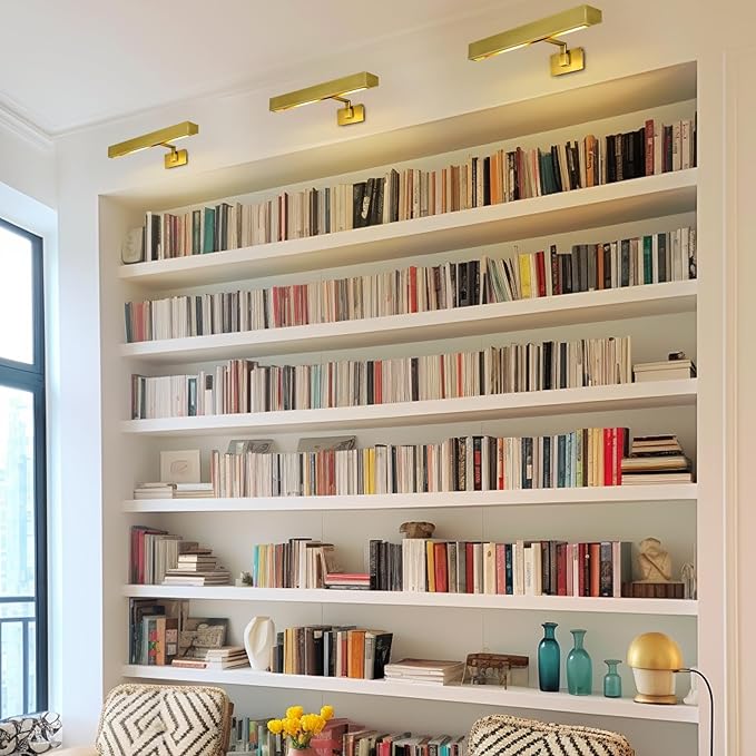 - 【Dimmable Picture Light】This brass picture lights for wall feature adjustable brightness and 270° lighting angle, you can adjust your gold art light to ensure optimal highlight your artwork, photos, books, mirror and and collectibles according to your needs. Ideal choice as gallery light, poster light, picture frame light, museum light, bathroom vanity lights.