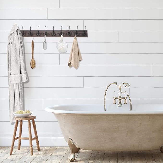 - Rustic and Heavy Duty: The old wood colored planks are made of pine solid wood, with delicate lines, decorating the home environment with retro and pure. And each sturdy zinc alloy Tri-hooks can hold up to 15 lbs of weight