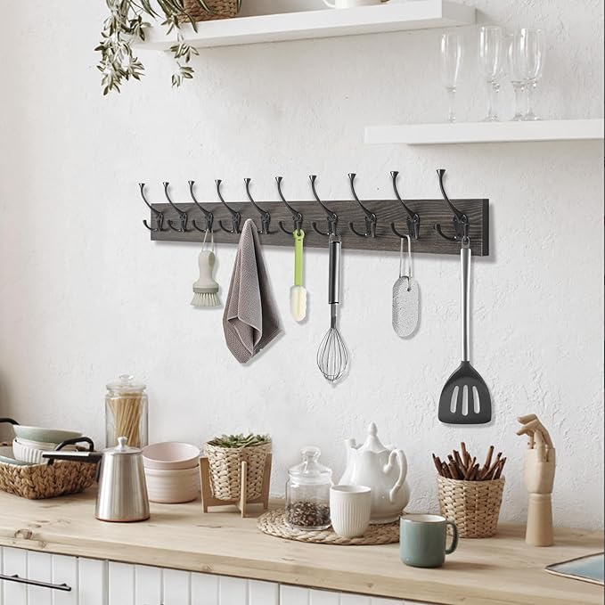 - Wide Application: This rustic wall mounted wood coat rack perfect for living room, entryway, bedroom, cloakroom, office and kitchen, great for hanging coats, scarfs, bags, robes, towels, hats, keys, umbrellas, etc