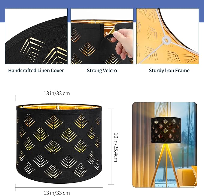 - ๐๐๐ซ๐๐๐๐ญ ๐๐ข๐๐ญ ๐๐ก๐จ๐ข๐๐: Made of premium black fabric linen and golden PVC, replacement lamp shades will definitely be the eye-catching piece with its classic and modern appearance. An ideal present for friends or family on birthday, Thanksgiving Day, Valentine's Day, Mother's Day, or other anniversaries.