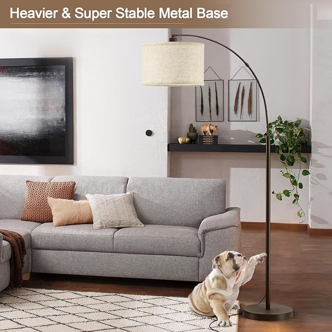 - Solid and Heavy Metal Base: In order to keep balance with the long arm body, the lamp base is made of heavy metal to prevent accidental tipping or falling. So that the floor lamps for living room won't tip over from slight bumps with kids and pets, no wobbling, no leaning, never fall down.