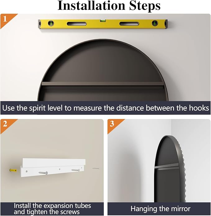 - 【Easy Mounted Arch Wall Mirror】JIINGYO arch bathroom vanity mirror comes fully assembled and can be easily installed in seconds with the metal hangers on the back of the mirror, reduce the trouble for positioning when hanging, easier than other traditional old-design hanging hole bathroom mirrors. You can hang it vertically or lean against the wall depending on your space and preference.