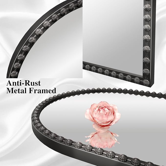 - 【Elegant Floral Metal Framed Mirror】 The 24x32 inch Black Arch Bathroom Mirror is made of metal material, a clear reflection with no distortion, clear lines, Floral metal frame design. Different from the other frame designs, elegant and anti-corrosion property, you can hang it easily by yourself.