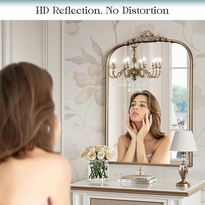 - Elegant Antique Design: The baroque mirror features a hand-carved MDF floral crown and an antique gold finish, blending artistic craftsmanship with the timeless charm of an ornate mirror