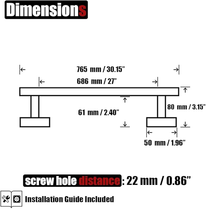 - 【Note Measure Before Buying Need 31 Inch Space】 Dimensions 30.15x3.15x1.96 Inch, 27 Inch USEABLE Bar, No need to fold your towel any more.