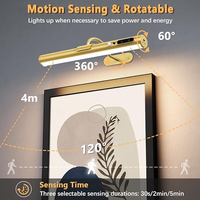 - šćPackage IncludesćMotion sensor battery powered pictures light for wall, remote control, USB-C charging cable, 360° rotating magnetic bracket, screws, user manual, 24/7 customer service, and a lifetime warranty. The motion sensor feature and adjustable sensor duration (30 seconds/2 minutes/5 minutes) ensure worry-free long-term use!