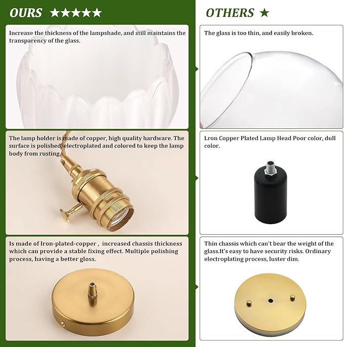 - 【Product Dimensions】Lampshade Dimensions: 5.91"Dia.x4.33"H(15cmx11cm),Adjustable Chain Length: 59"(150cm), set of 2. Polishing brass accessories are less prone to rusting, durable, anti-oxidation and moisture proof. INCLUDING 2 Bulbs (G45, 6W,2700k). With a rotary switch, need Hardwired. Shenmoyl pendant light has obtained CEC certification.