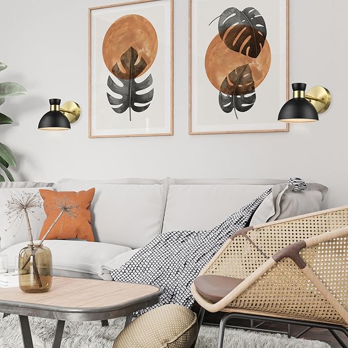 - MID-CENTURY MODERN: matte black, matte brass and a shapely bell shade come together to create a wall mounted bedside lamp worthy of your unique space and complementary to any décor
