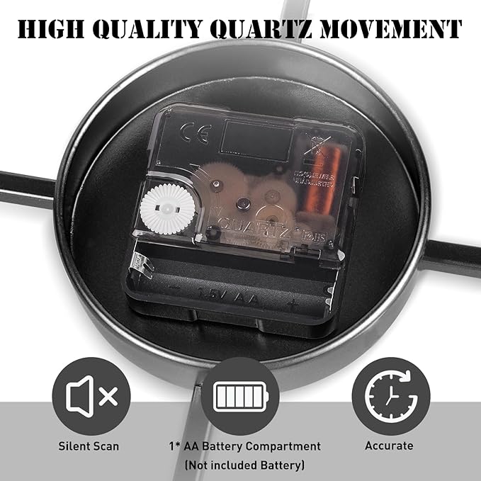 - [Quality Assurance] This unique wall clocks is made of metal, the metal hardness is strong and long life is not easy to deform, manually polished does not cut your hand, it is more delicate than ordinary clocks. Any non-human damage to the movement of this modern wall clock, please contact us in time.