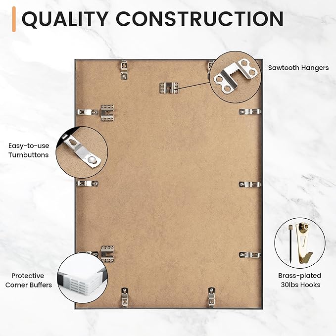 - Vertical & Horizontal Display - Our wall photo frames are versatile and easy to clip and hang. You can mount this metal picture frame horizontally or vertically, with hanging hardware included. This metal picture frame maximizes your available space.