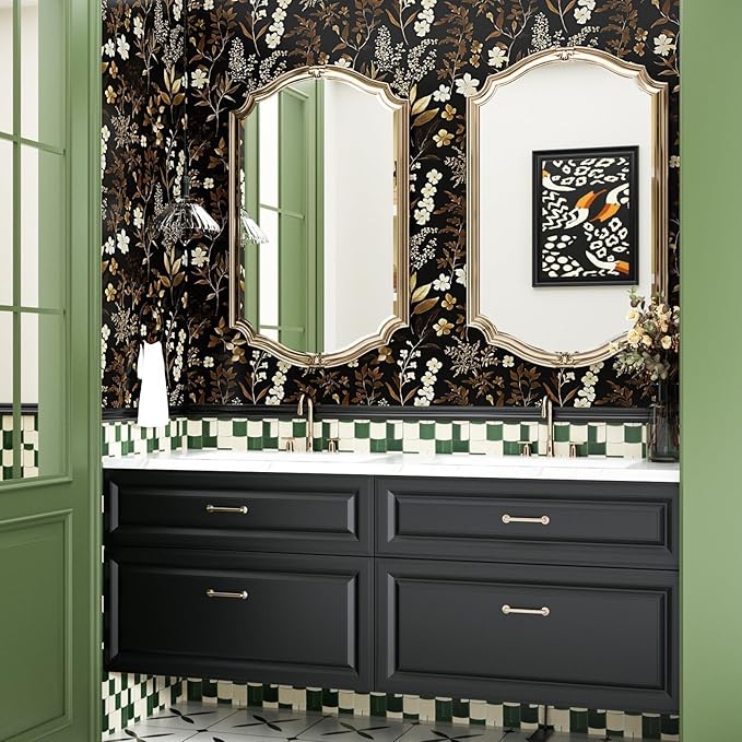 Vintage Wallpaper Peel and Stick Black Floral Wall Paper 17.4" x 118" Black Gold Contact Paper Self-Adhesive Wall Covering for Bedroom Desk Cabinet Decor