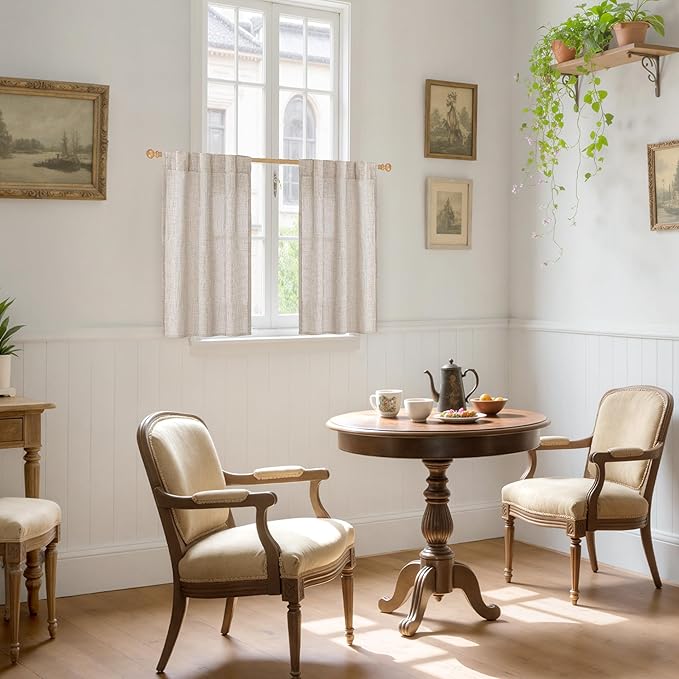 YoungsTex Cafe Linen Curtains 36 Inch Length for Kitchen Window Over Sink - Small Half Window Drapes Semi Sheer Light Filtering with Rod Pocket Back Tab for Bathroom, 2 Panels, 30 X 36 Inch