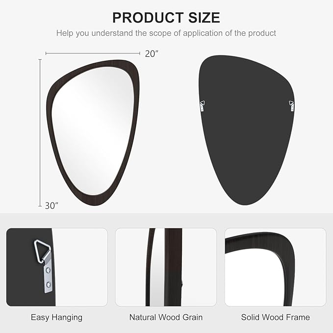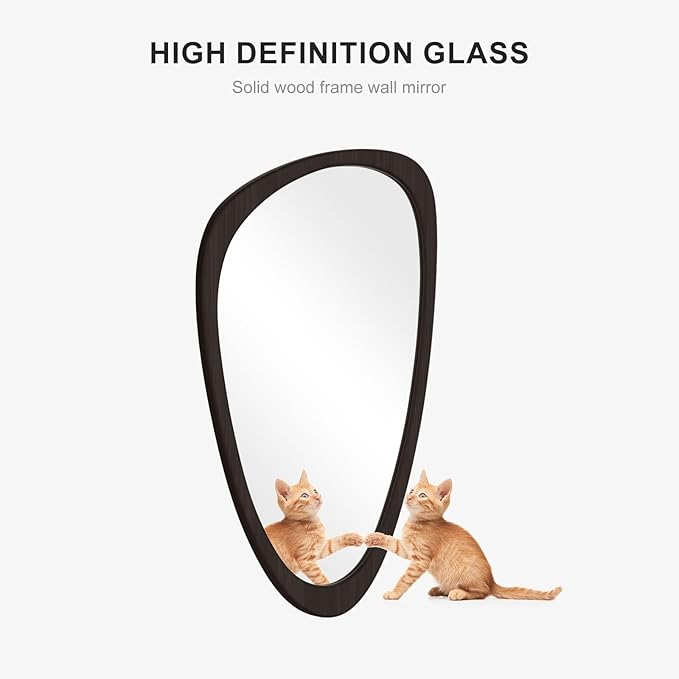 WallBeyond Asymmetrical Mirror, Irregular Wall Mirror, Wall Mirrors Decorative for Bedroom Living Room Entryway Hall, Wood Mirror for mid Century Modern Decor 30" H x 19" W, Black