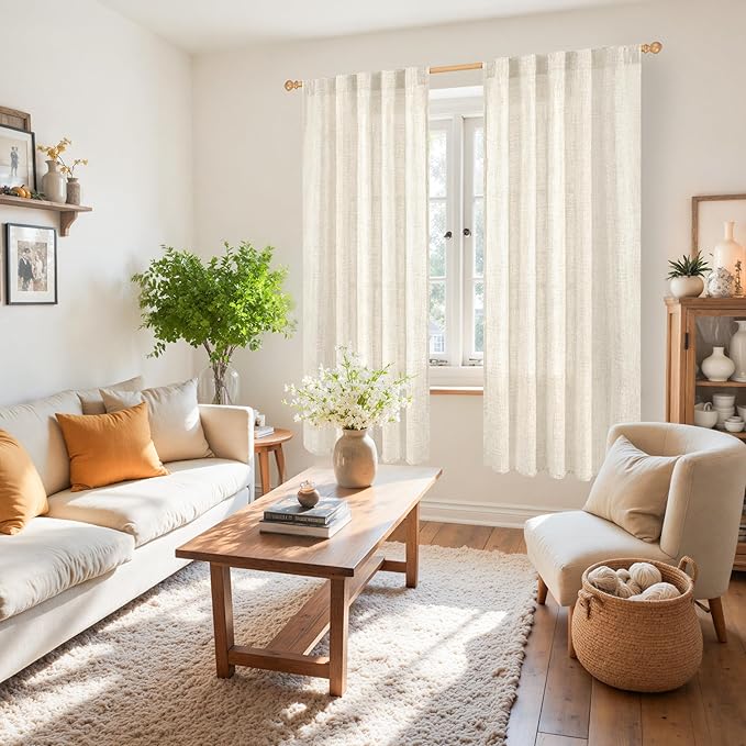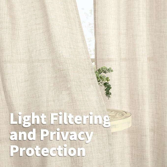 - Privacy Protection: Different from ordinary sheer drapes, our linen curtains are woven with a firmer and thicker texture that filters harsh light, while nice thickness helps provide privacy. Subtly balancing light and privacy that allow you to enjoy your leisure time.
